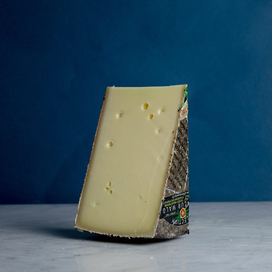 A concentrated flavour with vegetal sweetness. Walo receives these cheeses at four months’ old, and washes them for a full year so they retain moisture. The striking appearance comes from pockets of eyelets, which contain crystals.