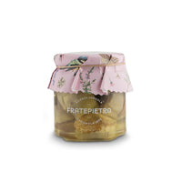 The Fratepietros pick their artichokes, boil them in vinegar and salt, and preserve them in sunflower oil all on the same day. The slices are unusually pale coloured and juicy. The market inexplicably prefers them to be left for a day to develop a darker turning to brown colour. Better looking? Questionable. Woody in texture and flavour? Certainly.